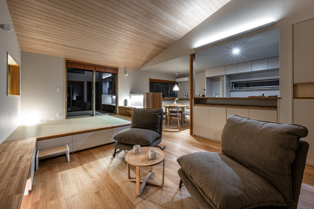 夜の雰囲気もよいですね。 最大L=3850 ※床 くるみAグレードオイル130